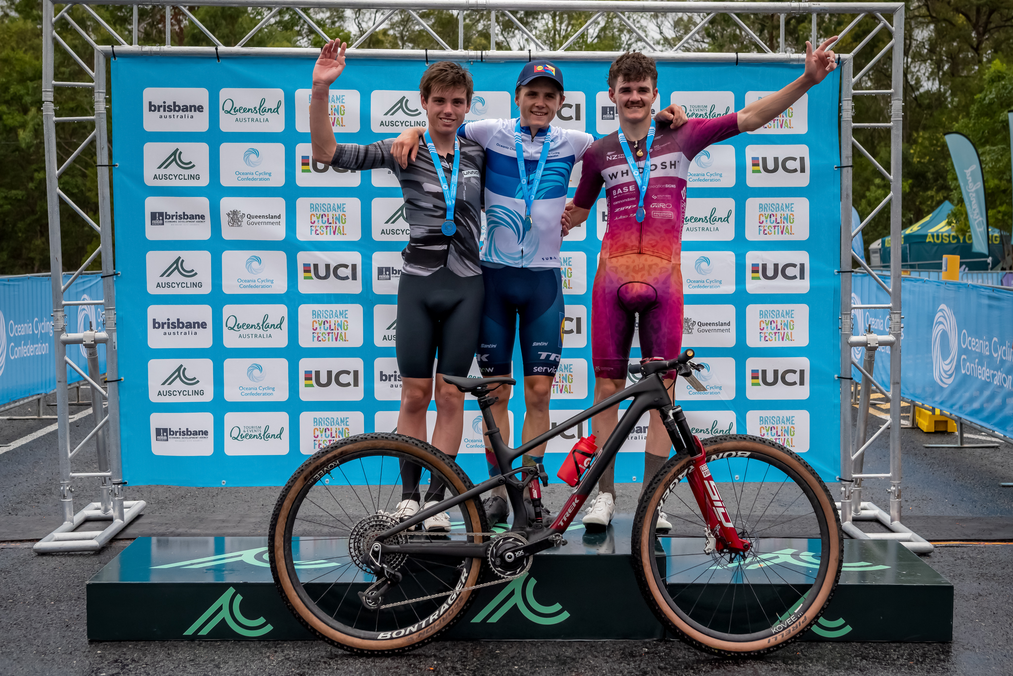 Australian riders finished with three Oceania titles after the cross-country Olympic championships were held in Brisbane as part of the Brisbane Festival of Cycling.